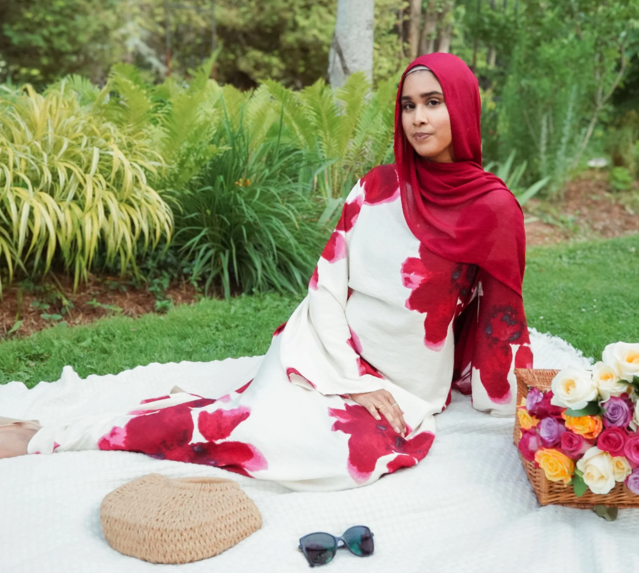 Graceful and modest maxi dress designed with a flattering flow and wide sleeves. The dress features a beautiful floral print and includes adjustable strings at the back to tie for a better fit. Made from lightweight, textured fabric that offers comfort and elegance for any occasion. Pair it up with our soft Modal Hijab to complete the look!