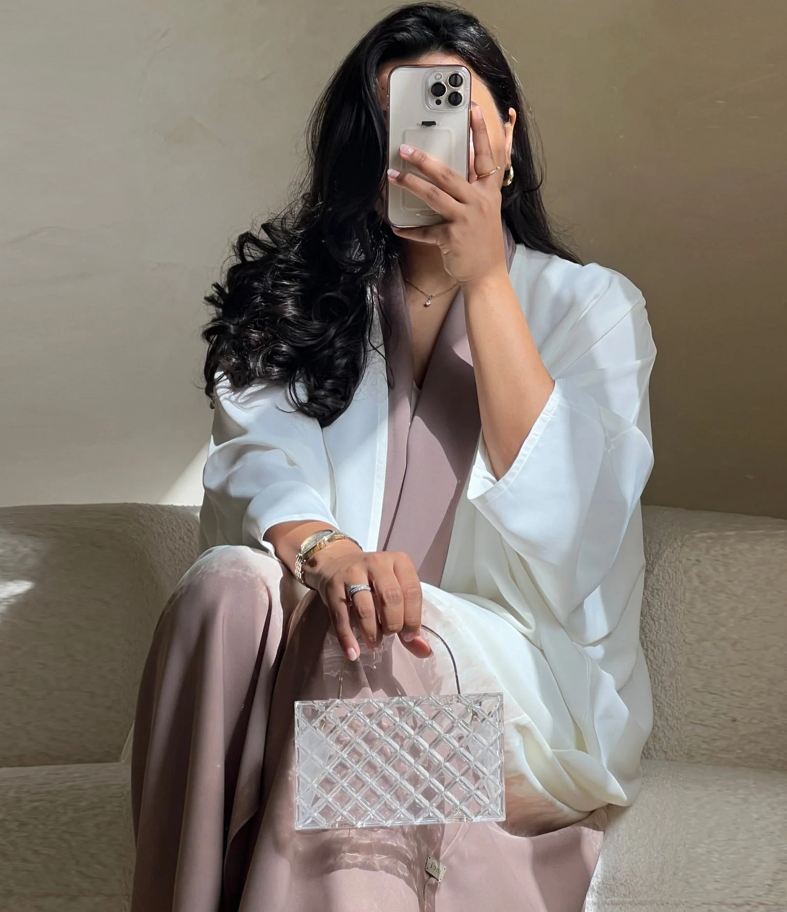 This abaya has a loose fit therefore, please check the size chart for accurate measurements. Product colour may slightly vary due to photographic lighting source.