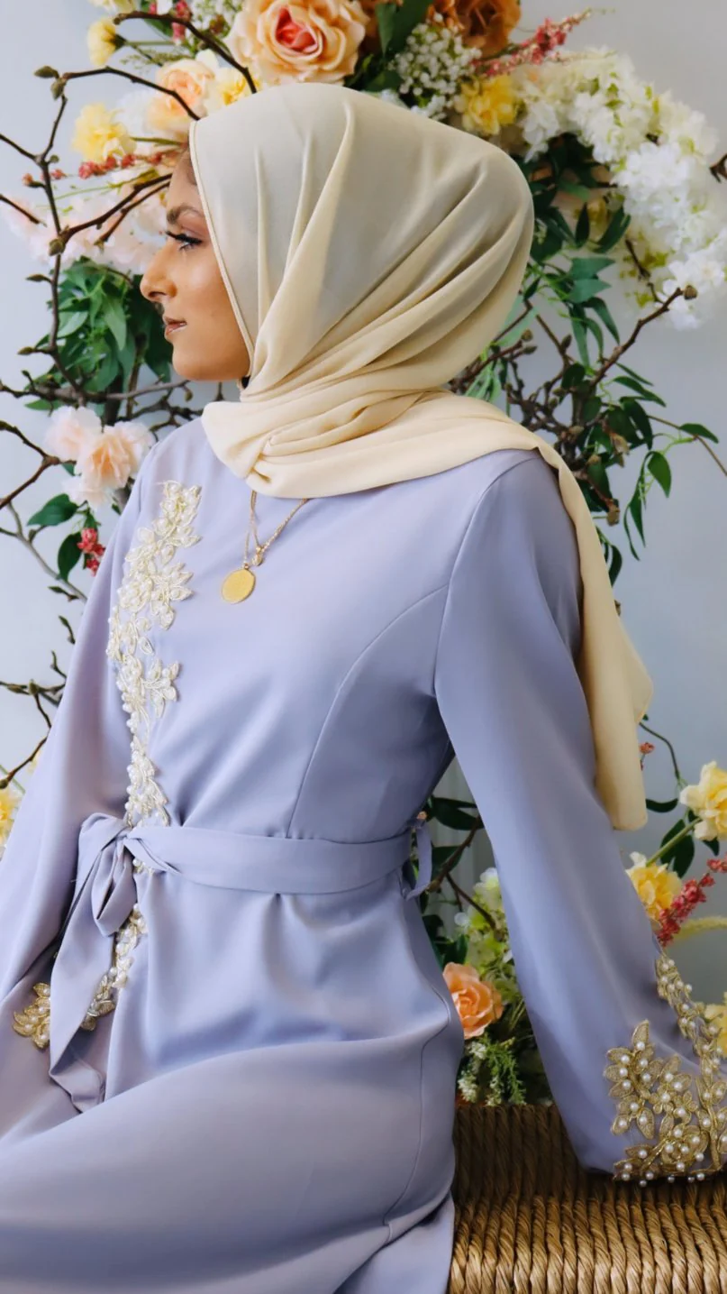 Beautiful balloon sleeves with detailed sequin embroidery gives this dress an elegant timeless appeal.Whether it be for bridesmaids or for an occasional wear, this dress is a perfect pick for any formal event.