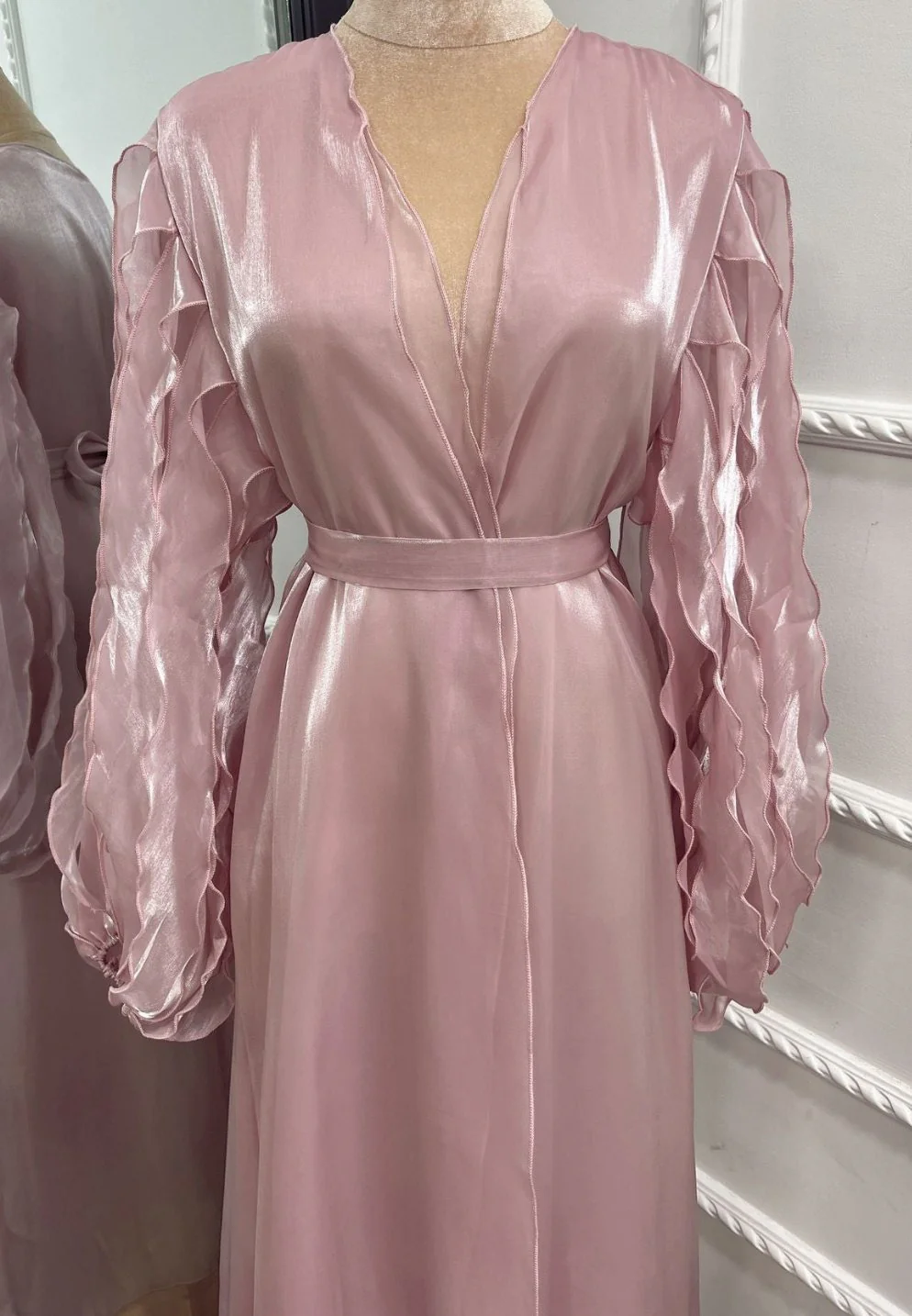 An elegant organza Abaya with wavy detailing on the sleeves makes it perfect for any formal event. Pair it up with our abaya inner slips for added elegance.